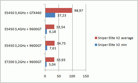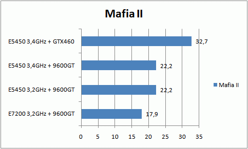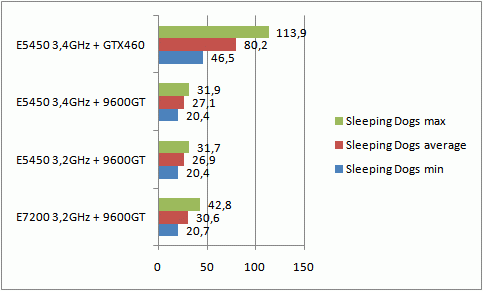 Выводы: Апгрейд обошелся мне в 3100 р. (продал Е7200 за 600 р., GF9600GT за 500 р., купил Е5450 1700 р., память 4 ГБ DDR 2 за 1000 р., GTX460 за 1500 р.). В итоге, система стала шустрее раза в 1,5. Недостаток один – процессор самая натуральная печка. Сейчас летом по вечерам приходится полностью убирать разгон, так как игры вылетают из-за перегрева. Днем терпимо, а вот к вечеру воздух за день очень уж сильно прогревается. <br/>
