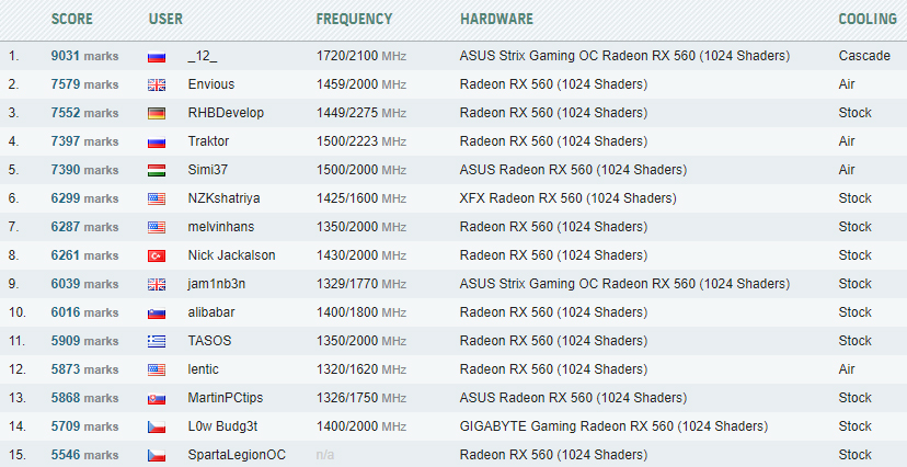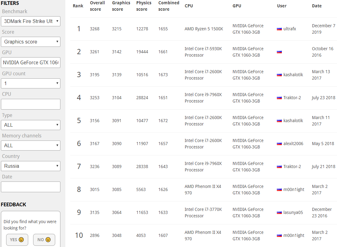 К слову говоря, мне и с моей GTX 1060 3GB MSI Gaming X повезло, еще немножко потратив время, мне удалось добиться на ней стабильных 2190-2202 МГц. На этих частотах я занял высокие места практически во всех дисциплинах как в базе 3DMark, так и на HWBot, учитывая тот факт, что там учитывается комбинированный балл, который в моем случае ограничивается процессором в лице Ryzen 5 1500X. Конкурировать с обладателями всевозможных Core i9 не представляется возможным.