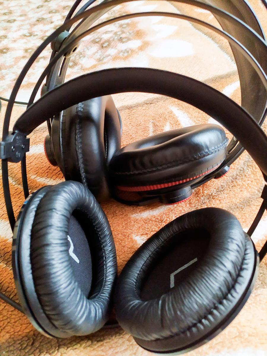 Амбушюры здесь гораздо больше и плотнее и это тоже дает заметное отличие, они как бы обнимают нас, словно подушки, тогда как в AKG амбушюры ощущаются как отдельная круглая чашка, придавливающая нашу голову по бокам. В целом, долго сидеть в AKG мне не особенно понравилось, да, они легкие и все такое, но их ощущаешь, как какой-то инородный предмет, да и прилегают они очень легко, создавая чувство, что при любом движении они чуть ли что не слетят с головы. Это вызывает определенный дискомфорт. Superlux же плотно облегает голову и намертво на ней висят, никуда не елозят, но болтаются, сидят крепко, надежно, но никаких «тисков» при этом нет и в помине.
