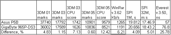 Gigabyte 965P-DS3 vs Asus P5B или разгон vs производительность