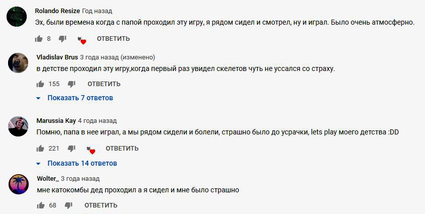 Даже сейчас, спустя почти 20 лет, в разрешении 1080р она выглядит весьма неплохо. Прикреплю несколько ностальгических комментариев с YouTube:
