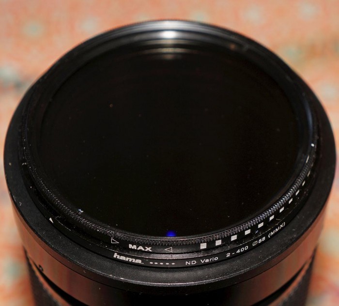 3.Также применяют его для того, чтобы при съёмке движущихся предметов получить эффект размытия в движении, увеличив выдержку, к примеру, до 0,5-1 секунды. Удлиняя выдержку вы увеличиваете количество света, попавшего на матрицу во время экспозиции кадра, и чтобы не получить засветки кадра, вы опять этим светофильтром уменьшаете количество света. Например, интересный эффект размытия и матовости воды можно получить с этим светофильтром при съёмке водопада, при этом вода из блестяще-прозрачной, становится матово-белёсой, почти как молоко. И так же можно получать эффект размытия движения людей и машин в солнечный день (такие эффекты без этого светофильтра можно получить только при ночных условиях освещения при фотосъёмке). Точно такой же эффект размытия движения получается при съёмке любых движущихся процессов: дыма, воды, огня, людей, машин, облаков, водопадов, фонтанов, ручьёв, и т.д., и т.п.