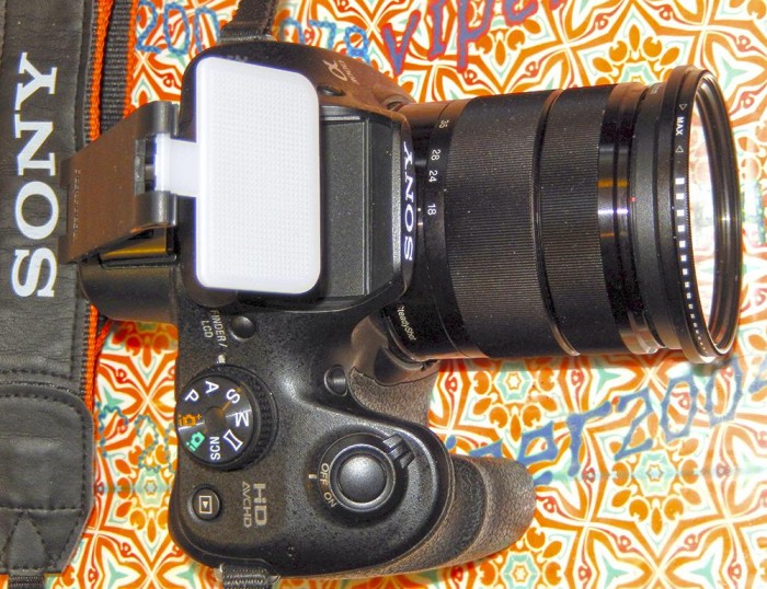 Фото светофильтра на KIT-овом объективе Sony SEL1855, поставленном на беззеркальный фотоаппарат Sony Alpha A3000, вид сверху.