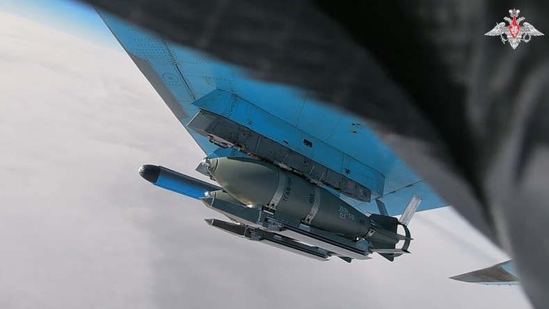 Бомбы ФАБ-500 с УМПК под крылом бомбардировщика Су-34. Фото: Минобороны РФ