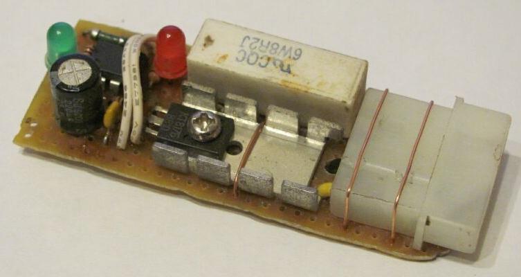Для решения проблемы было изготовлено простое устройство. Сразу после включения оно дает нагрузку около 20Вт на линию 12в, обеспечивая нормальный запуск блока питания, и выключается спустя несколько секунд.