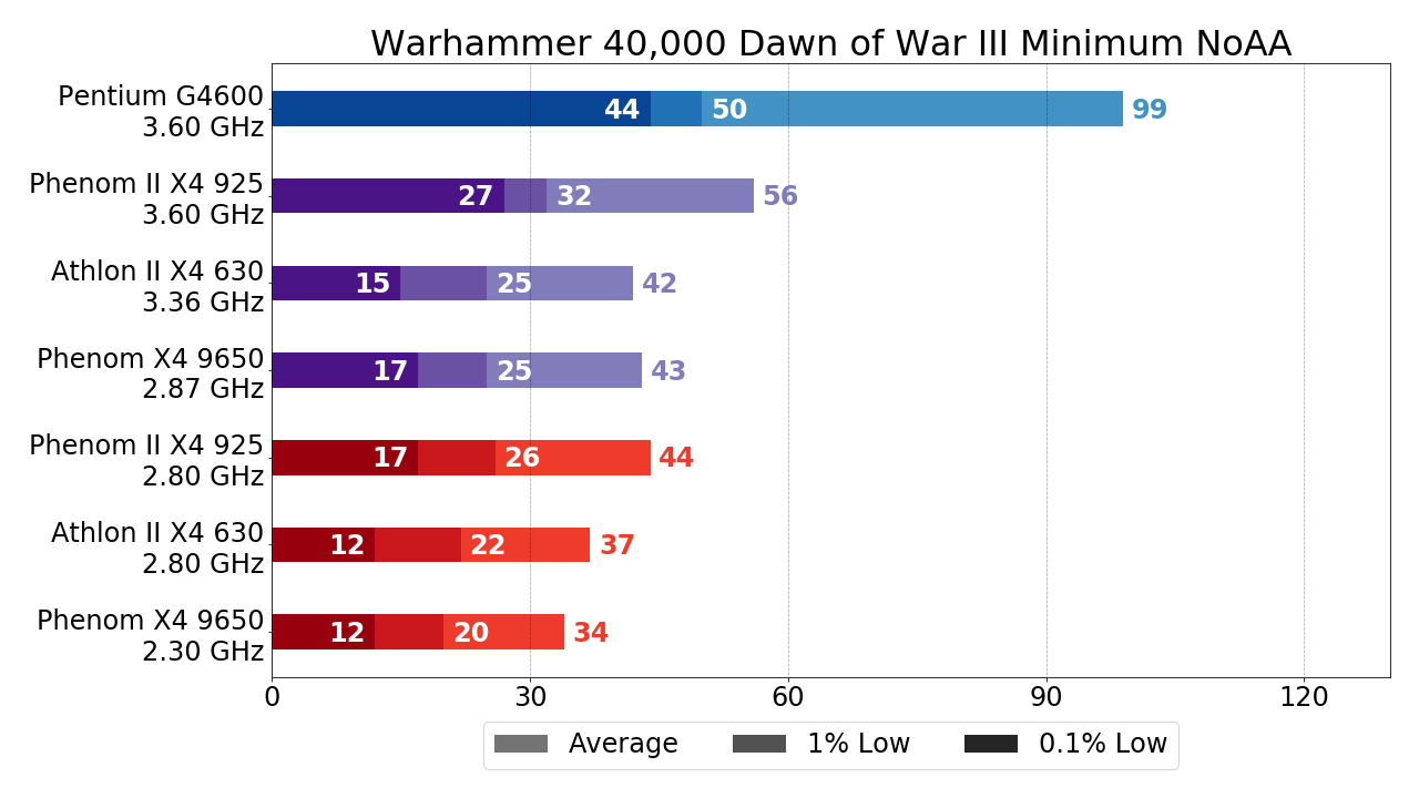 Warhammer 40,000 Dawn of War III, основанный на актуальной версии Essence Engine, современные API (DirectX 12, Vulkan) не поддерживает, да и в целом в техническом плане далёк от совершенства. 4-ядерным чипам прошлых лет от AMD приходится тяжело — до стабильных 30 FPS добирается лишь Phenom II X4 в разгоне.