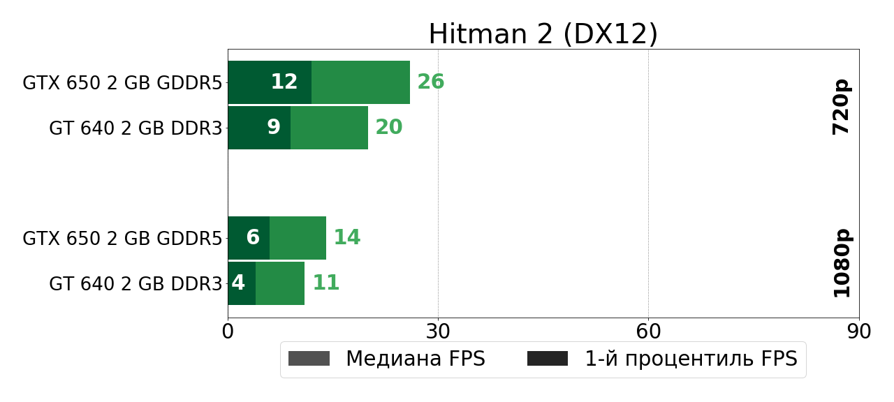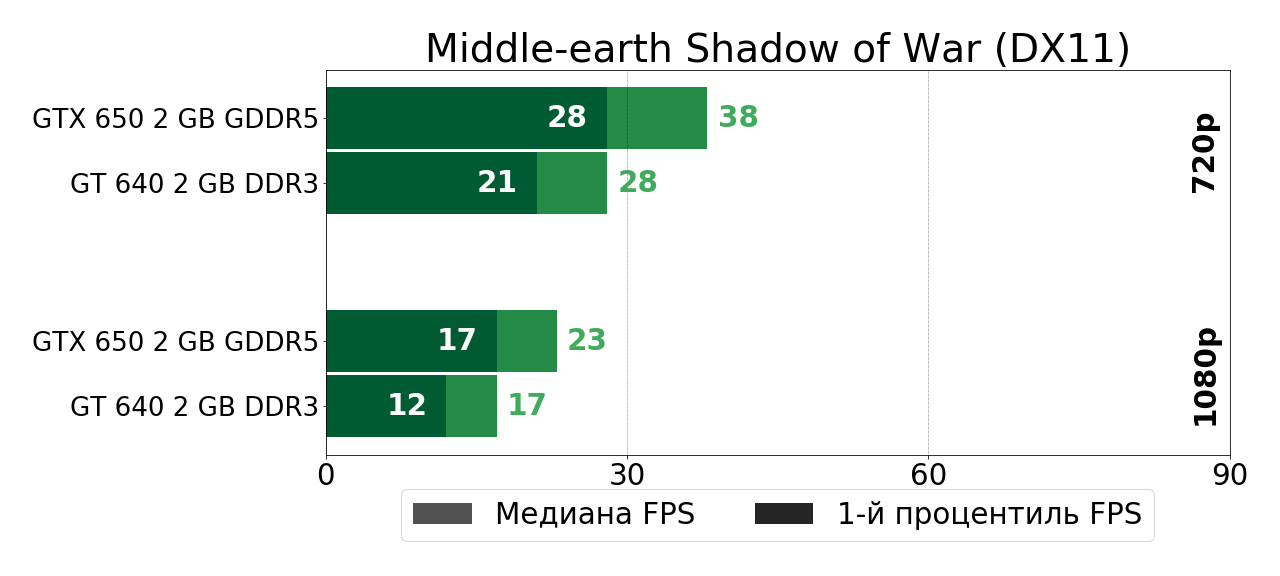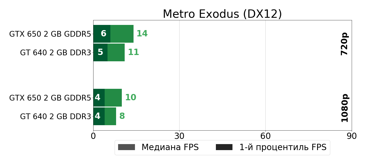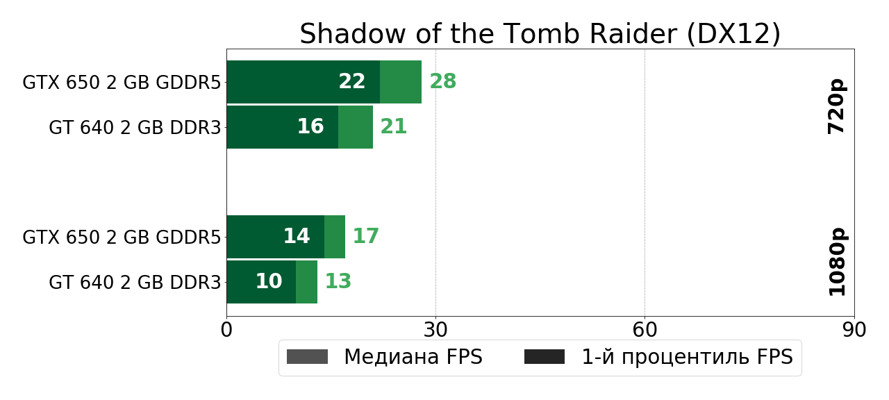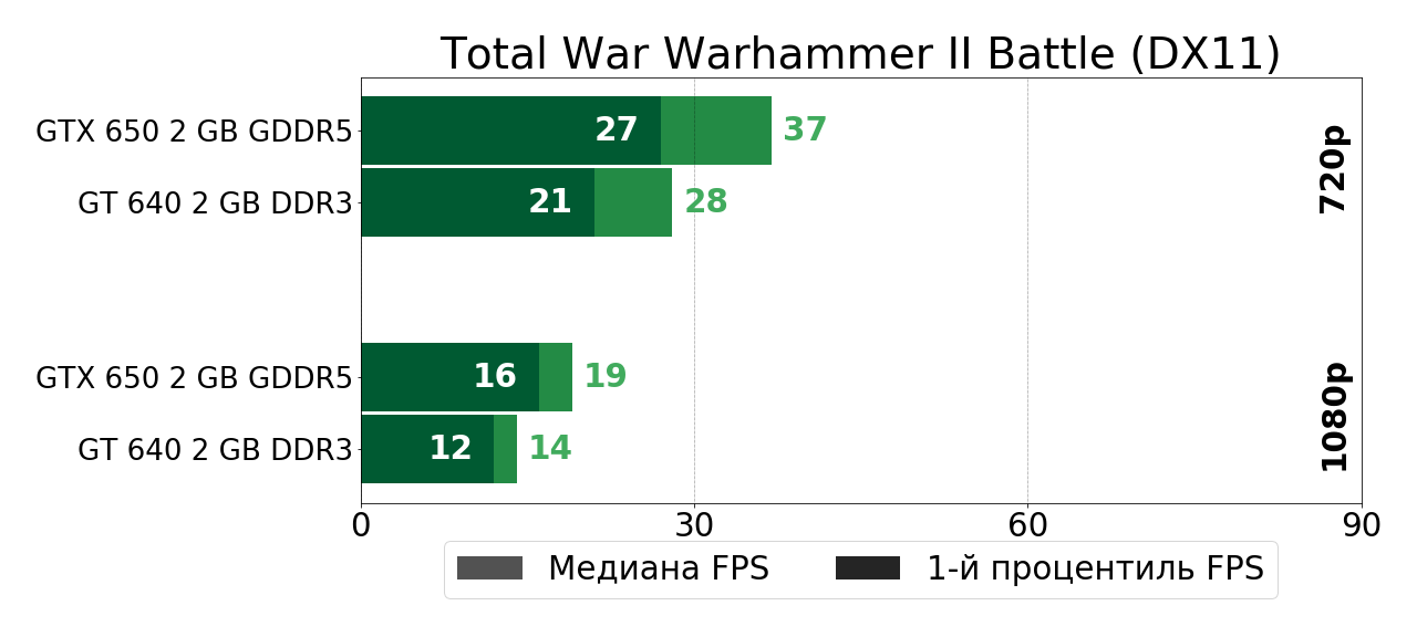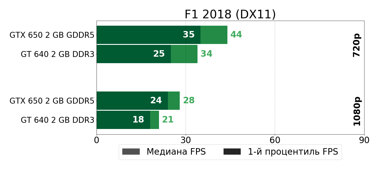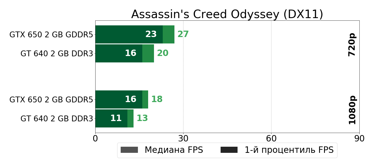 В своё время довольно мощный по меркам 2012 года графический чип GK107 оказался в буквальном смысле зажатым в очень узкие рамки DDR3-памяти в решении GeForce GT 640, так что полной грудью этот чип вздохнул лишь чуть позже, в GTX 650, где сбросив DDR3-оковы, продемонстрировал на 40–70% более высокую игровую производительность. И в играх тех лет такой прирост был существенным, так как очень часто позволял перейти границу между играбельностью и неиграбельностью. Сегодня же ситуация, как мы убедились, несколько иная.