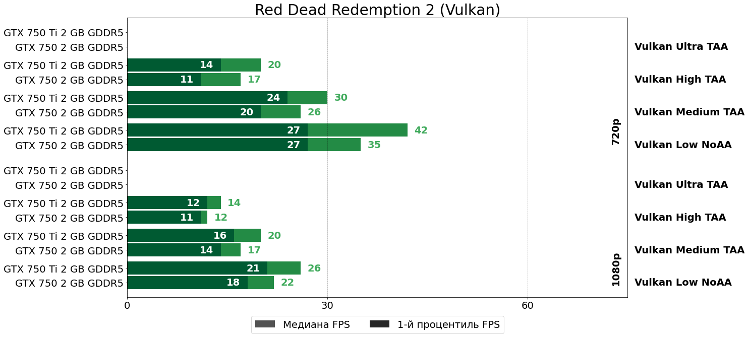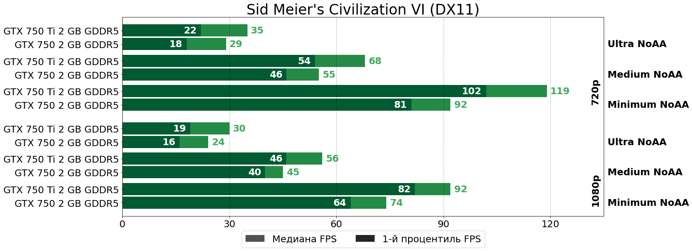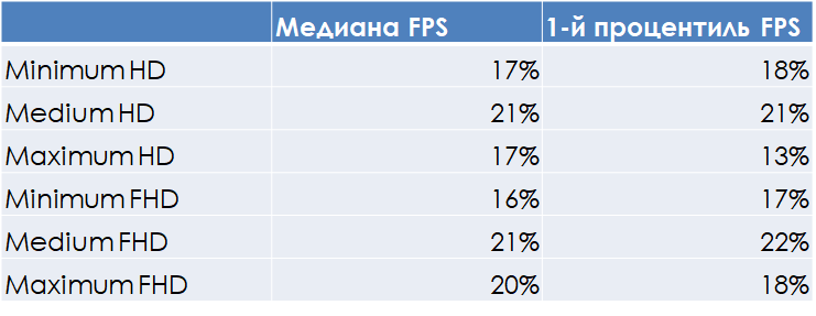 - Если говорить об играбельных настройках более конкретно, то в современных играх оба ускорителя способны обеспечить стабильные 30 FPS на средних настройках качества в HD-разрешении и на минимальных настройках в разрешении FHD. Тестировать ускорители в разрешениях с большим количеством пикселей, соответственно, особого смысла нет, так как уже в QHD они не дотянут и до стабильных 30 FPS.