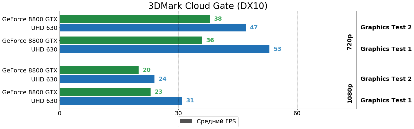 В тесте Cloud Gate из актуальной версии 3DMark вновь превосходство на стороне UHD 630, но это всё "синтетика", а как оно будет в реальных играх мы ещё посмотрим. Однако, одно можно сказать точно уже сейчас — легко участникам тестирования в играх точно не будет. Кто бы не оказался впереди по итогу, на многое рассчитывать не приходится: в HD возможно что-то получиться и на средних настройках, а вот в FHD — дай бог "на минималках".