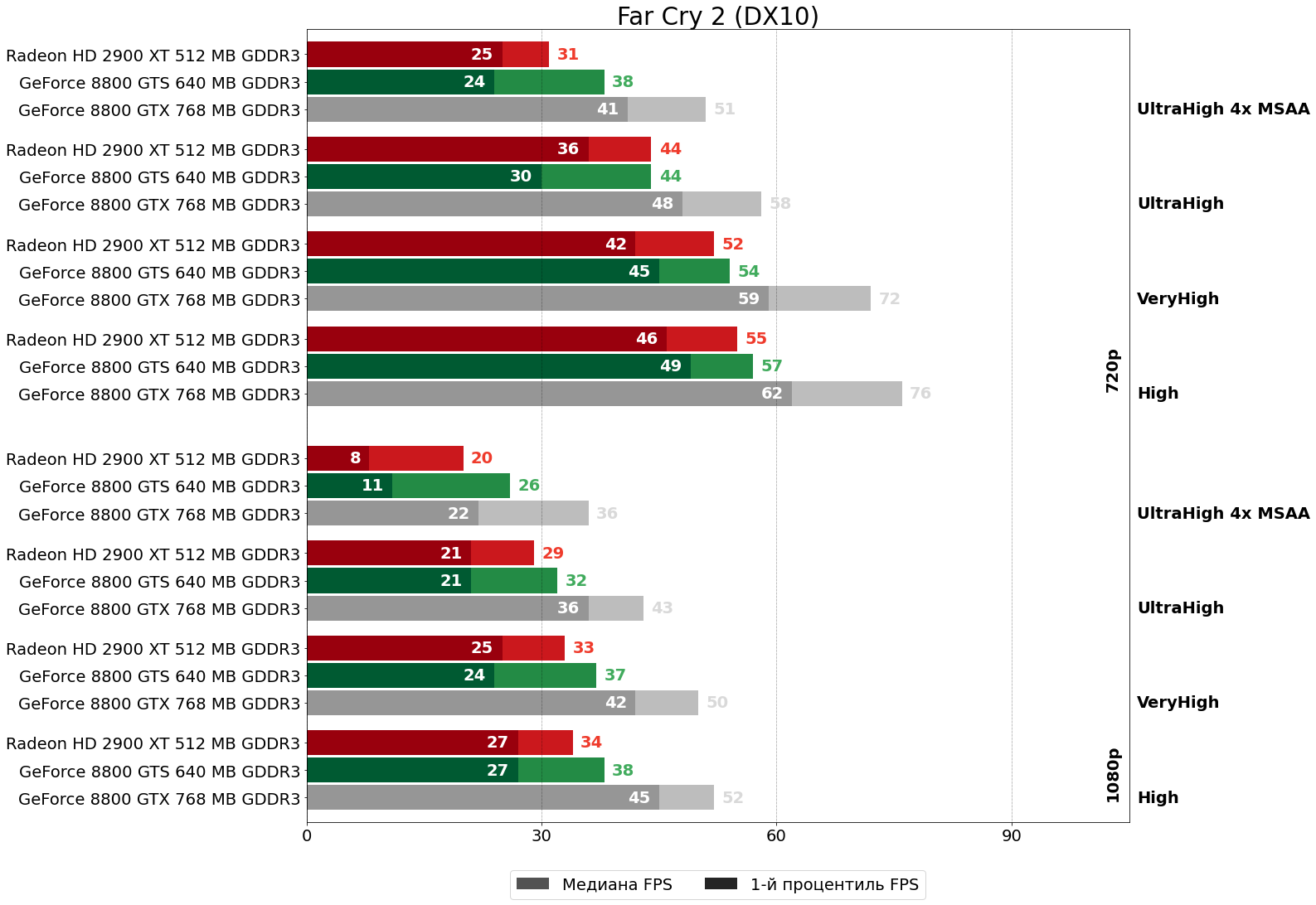 В Far Cry 2, напротив, видеокарта NVIDIA, на сей раз уже 8800 GTS, всё ещё впереди. Преимущество, впрочем, несущественное.