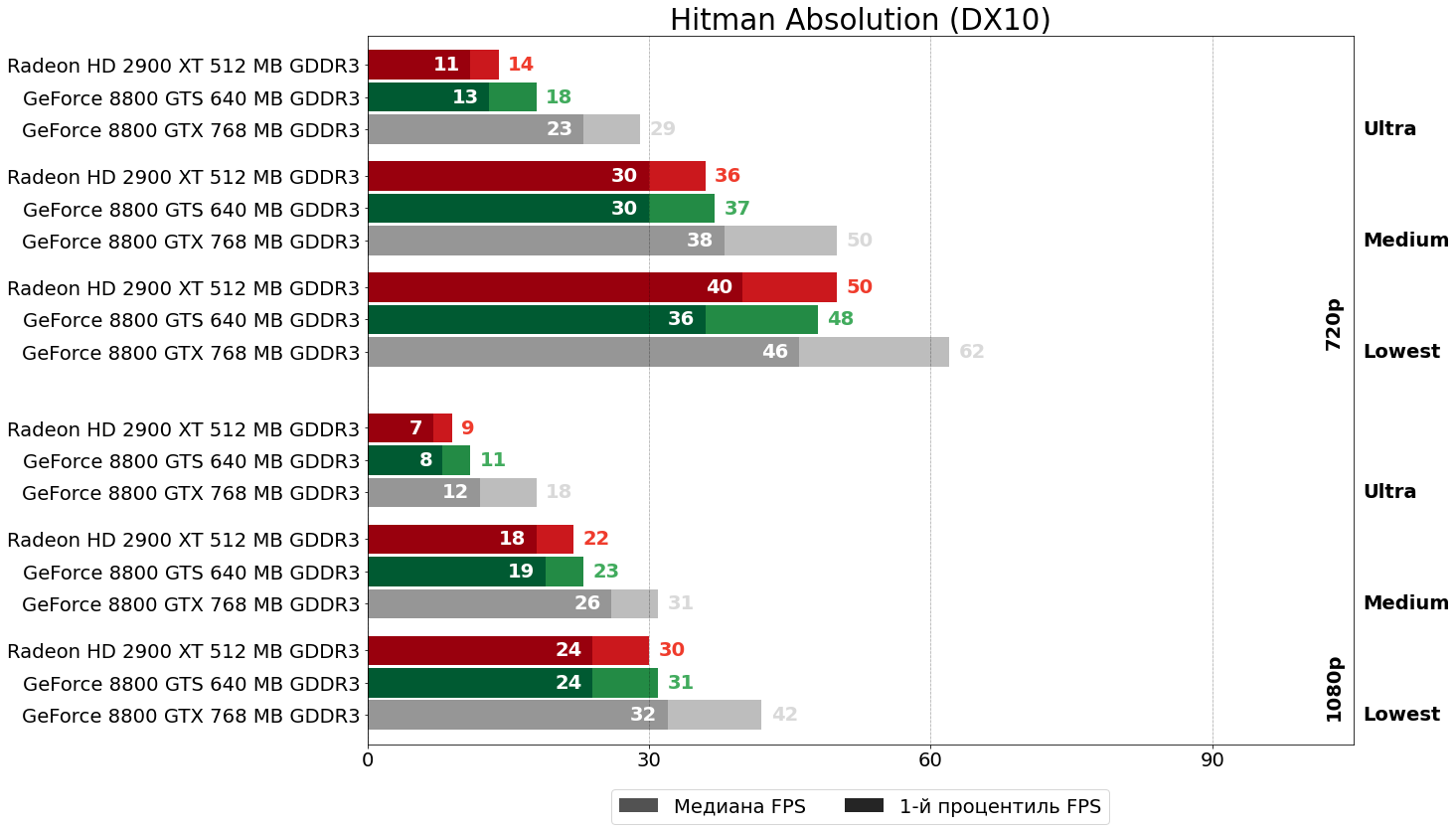 А вот в Hitman Absolution от отрыва "зелёной" карты при сравнении ускорителей одинаковой стоимости не остаётся и следа.