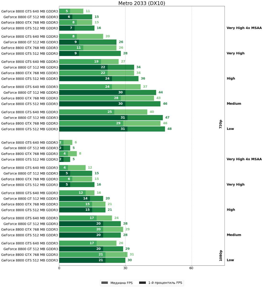 В Metro 2033 между GeForce 8800 GTS 512 и GeForce 8800 GTX в общем и целом наблюдаем паритет.
