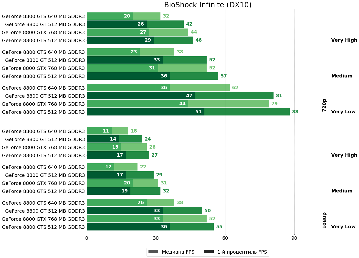 В BioShock Infinite "грубой силы" GeForce 8800 GTS 512 вновь достаточно чтобы обойти, пускай и незначительно, GeForce 8800 GTX.