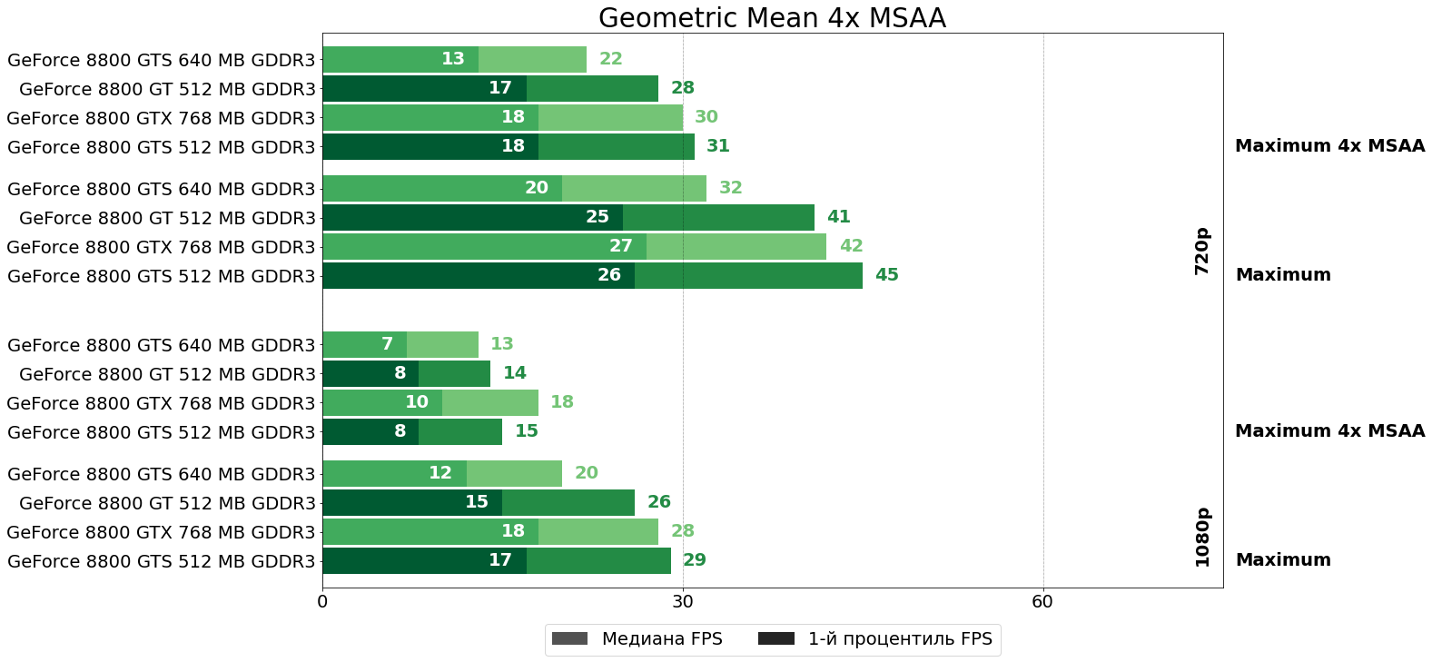 А вот в GTA V GeForce 8800 GTS 512 заметно быстрее только на самых лёгких настройках — минимальные настройки качества в HD-разрешении. Впрочем, именно эти настройки, пожалуй, самые важные, так как именно на них GTA V всё ещё играбельна на рассматриваемых видеокартах.