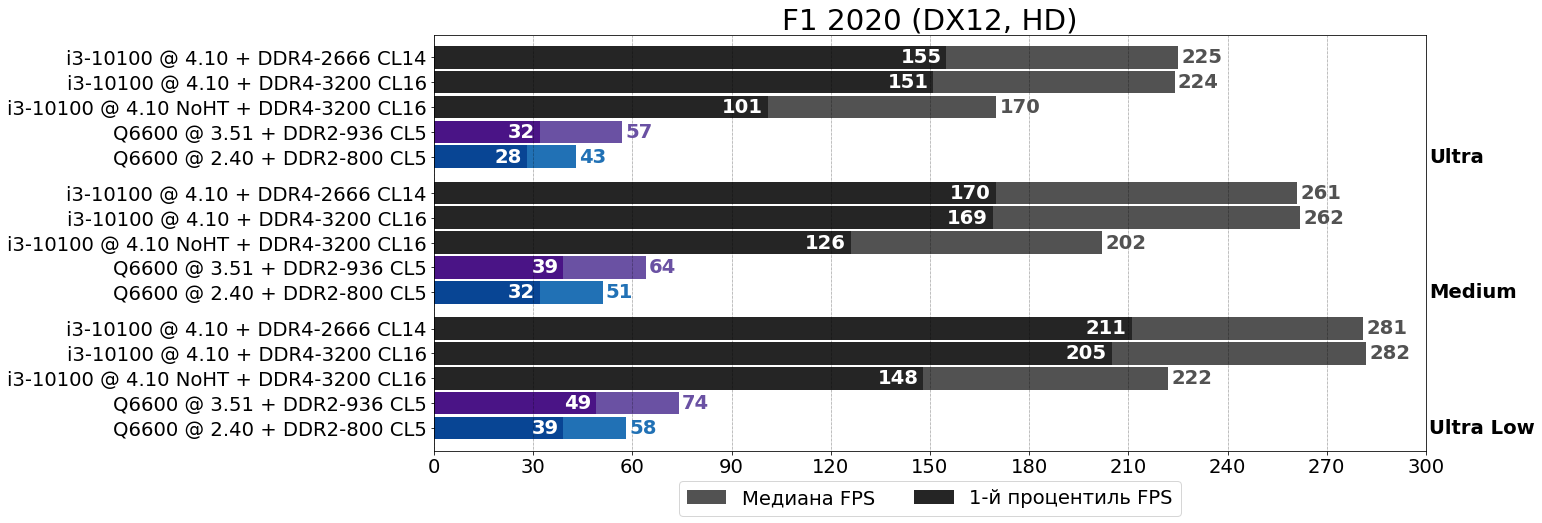 - Отключение HT у Core i3-10100 понизило средний FPS на 5–7%, а минимальный — ровно вдвое больше, на 10–14%. Заметно, конечно, но не катастрофа. Да, игры не самые "свежие", так что 4 современных ядер им "за глаза".