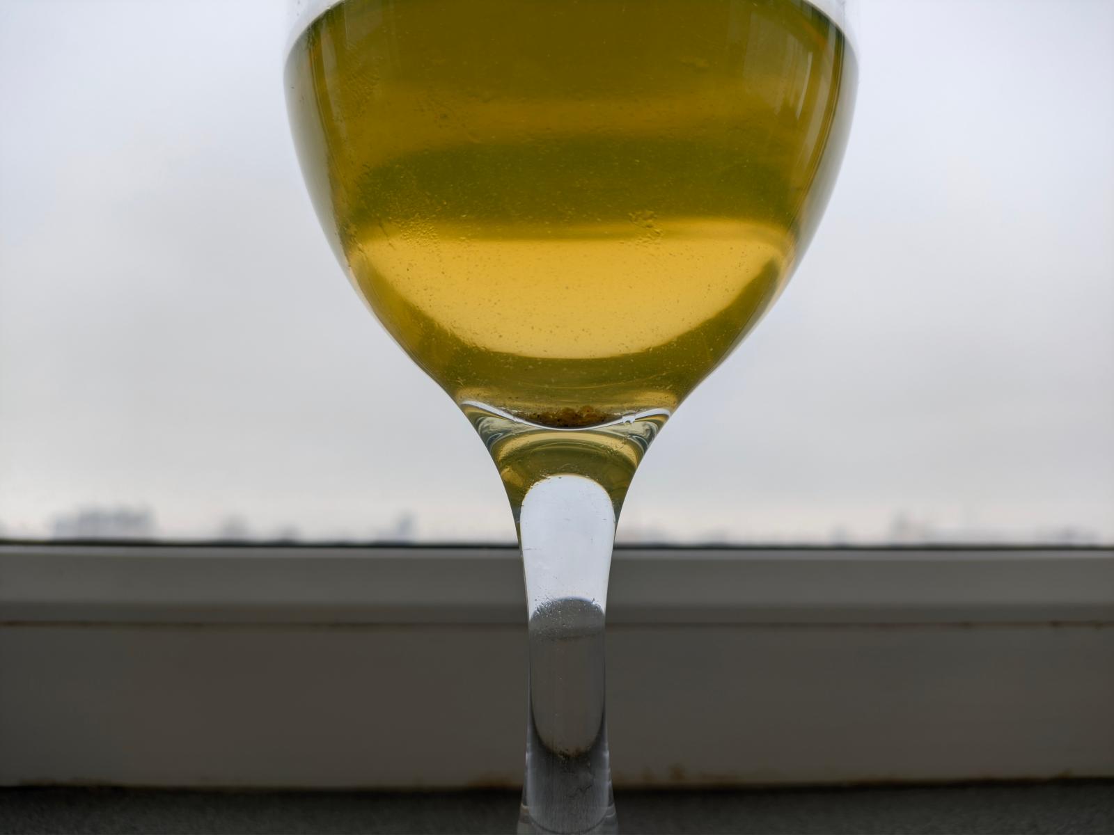 Слил жидкость в первую попавшуюся под руку прозрачную ёмкость — она мутная, да и осадок на дне заметен невооружённым глазом.