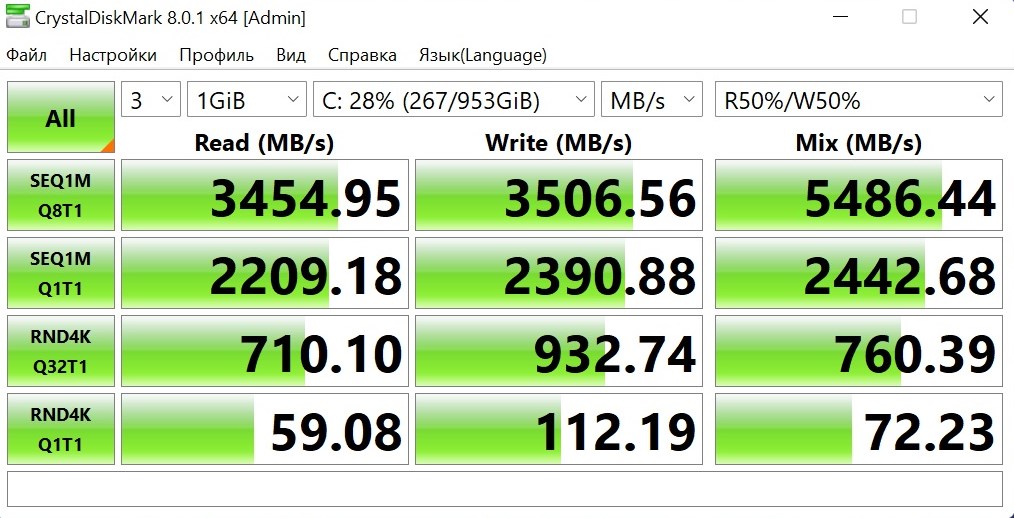 Видно, что накопитель работает в режиме PCI-e x4 Gen3.