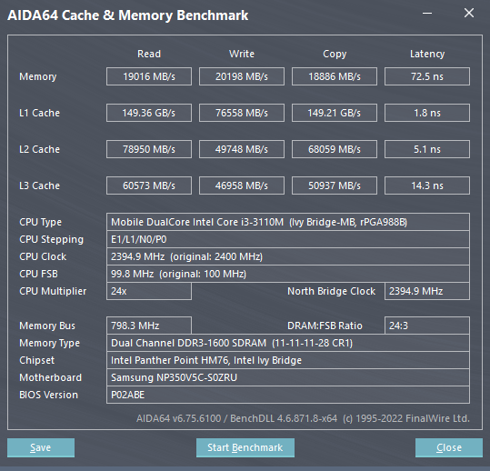 Теперь проведем тест на скорость памяти и кэша процессора в AIDA 64.