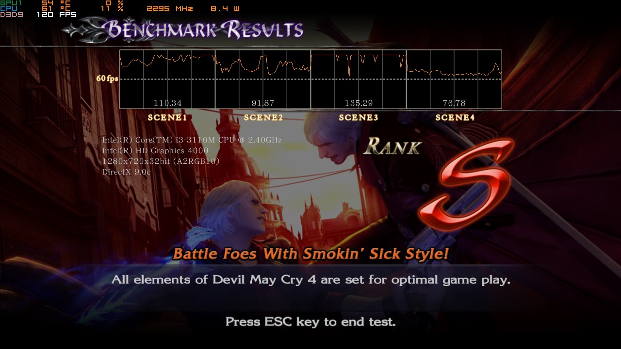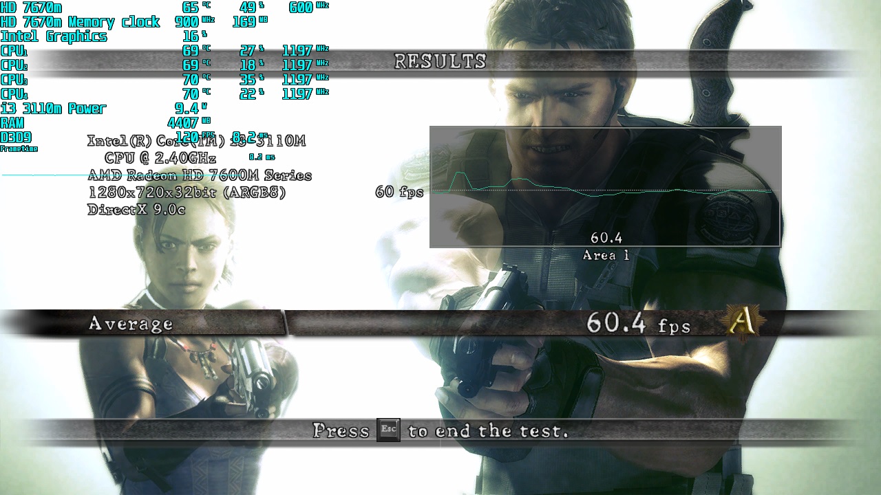 Бенчмарк Resident Evil 5. Настройки высокие, без сглаживания, в разрешении 720р.