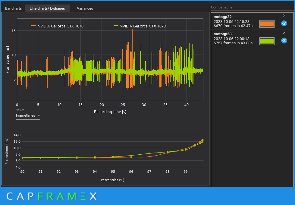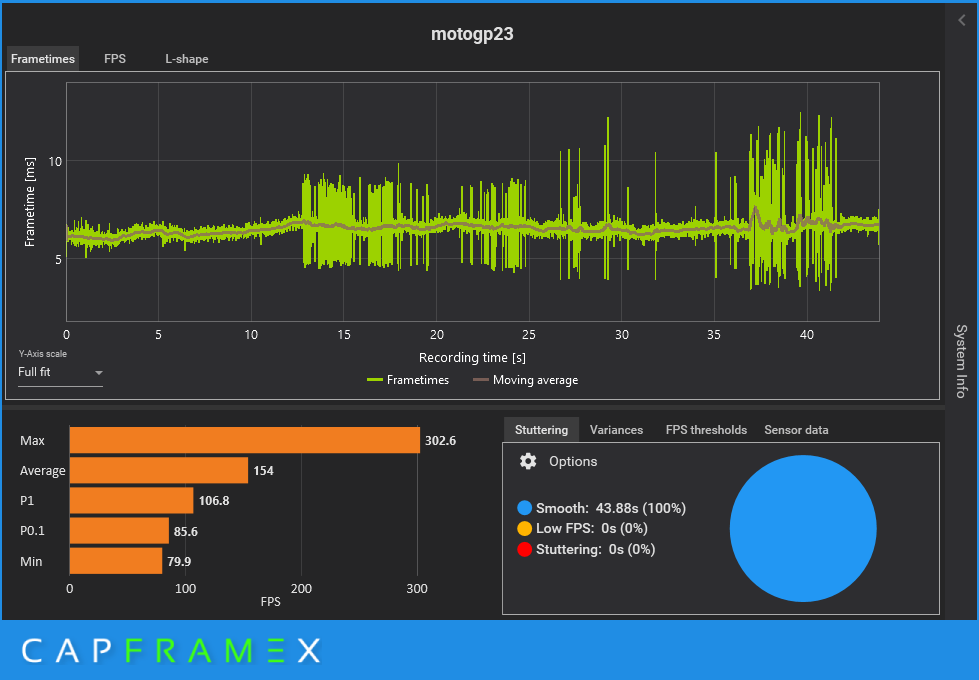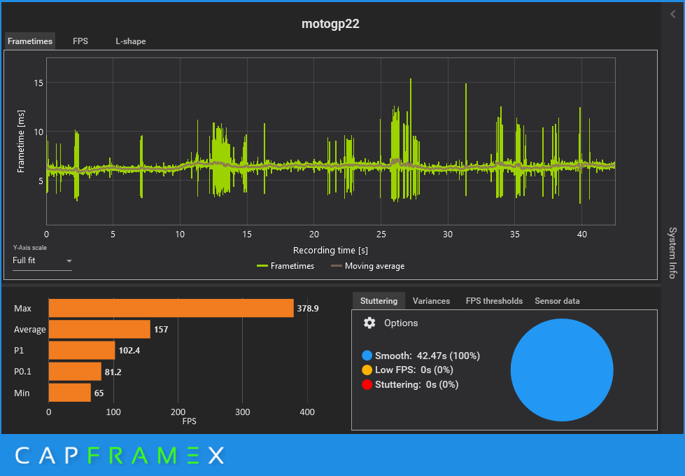 Запись тестового отрезка производился программой CapFrameX.
