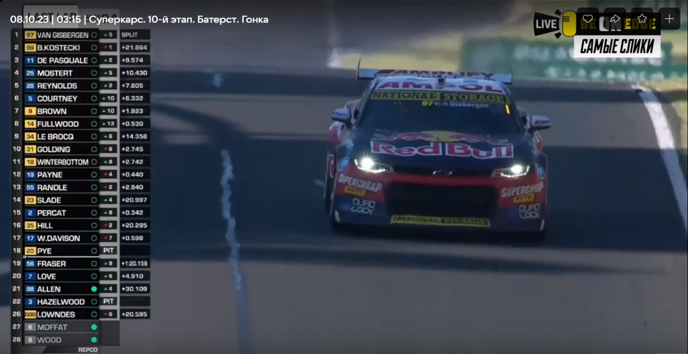 Supercars. Австралия, трасса Mount Panorama. Buthurst 1000. Многочасовая гонка на 1000 километров, со сменой пилотов на одной из сложнейших трасс мира (ее можно опробовать во многих играх, например, Grid Autosport). Разные команды использовали разные тактики пит-стопов.