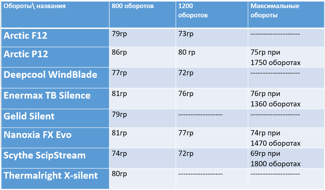..."Не вынесла душа поэта"... Стал искать, чего бы еще прикрутить для сравнения... В итоге, снял с одного компа Arctic F12. Он уже "повидал жизни" и имеет посторонние шумы. Но для теста сойдет. То, что его максимальные обороты ниже конкурентов также не повлияет: до них ему раскручиваться не придется.