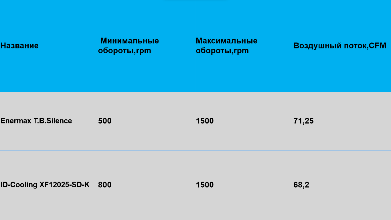 Вентилятор в порядке, работает без посторонних шумов. Выглядит для своей суммы прилично. Вот краткое сравнение данных вентиляторов: