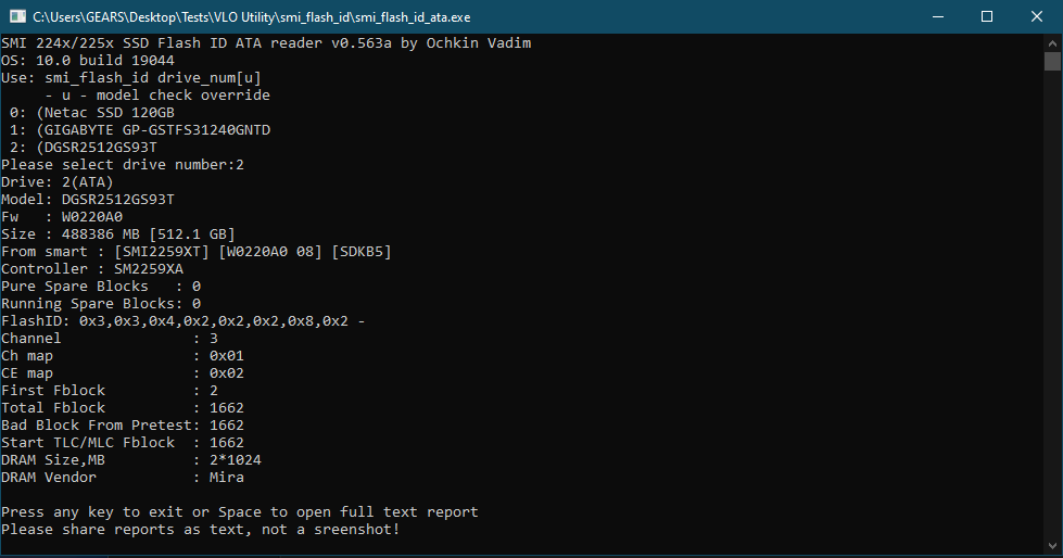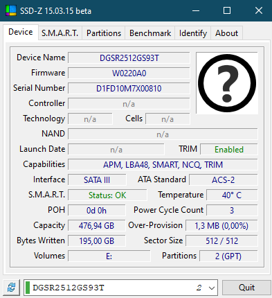Показатель температуры в ССД не работает, во всех тестах он показывал 40 градусов. Ну, и на последок, проверим, что там засунули внутрь. Для этого воспользуемся утилитой Вадима Очкина: