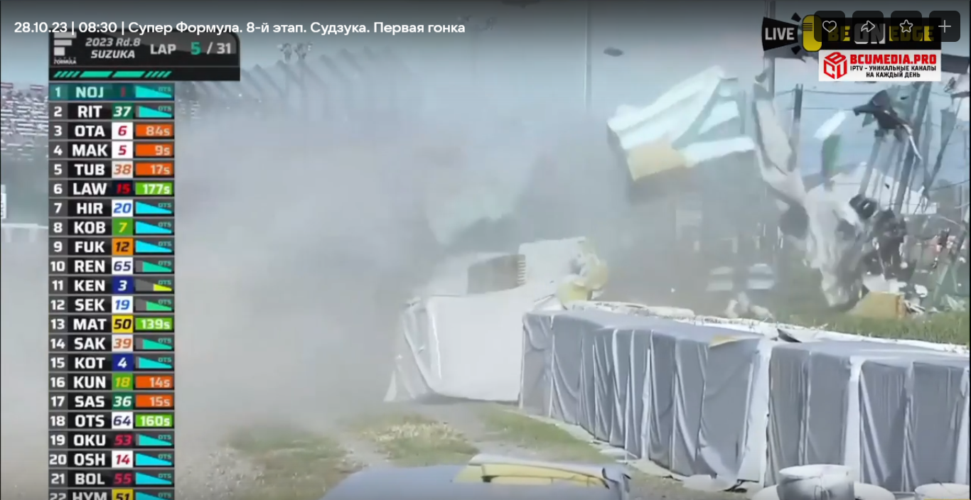 На 5-м круге произошла сильнейшая авария с разрушением барьера безопасности.