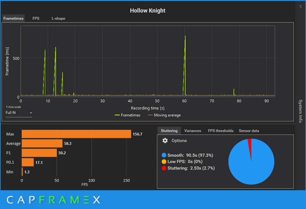 Настройки выставил максимально возможные, разрешение - 1920х1080. Запись тестового отрезка производилась программой CapFrameX.