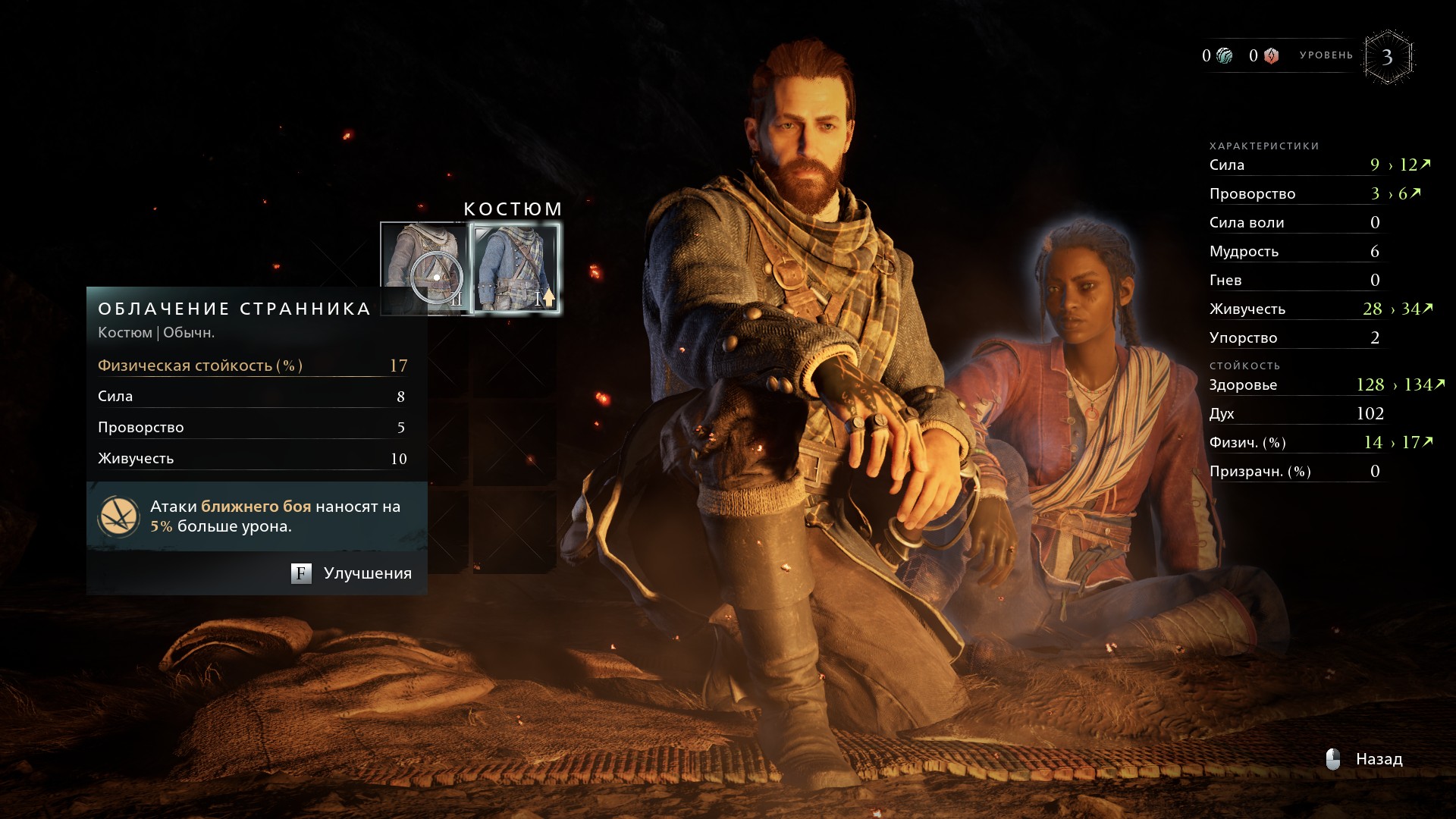 Будут и боссы, но я до них еще не добрался (считать минибоссика серьезным противником не буду). В моменты отдыха у костра, можно отдохнуть (с восстановлением здоровья и возрождением врагов) или прокачать свои навыки.