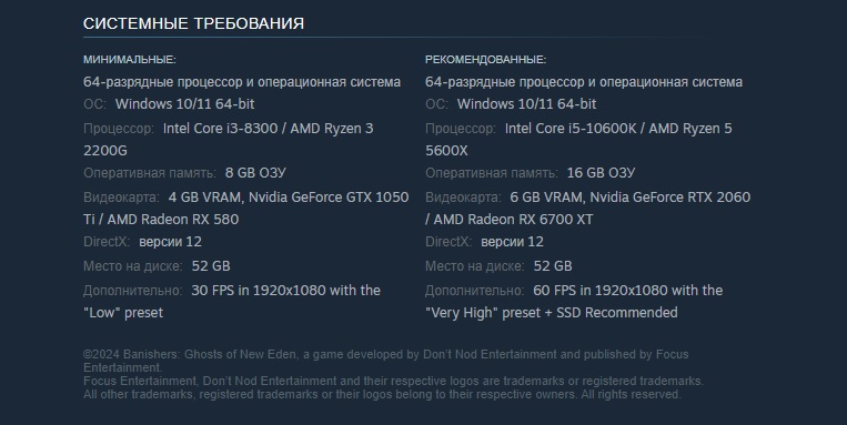 Итак, вот, что написано об игре в STEAM: "Banishers: Ghosts of New Eden - новая игра знаменитой студии DON’T NOD, известной своими хитами Life is Strange и Vampyr. В центре этой экшен-РПГ - глубокая история о головокружительном пути по грани между жизнью, смертью, любовью и жертвой. Сыграйте за пару изгнателей, Реда и Антею. Эти опытные охотники за призраками обременены тяжким долгом: снять страшное проклятие с помощью мощных ритуалов. Защищайте живых от неупокоенных призраков и теней и станьте маяком надежды в мире, окутанном тьмой"