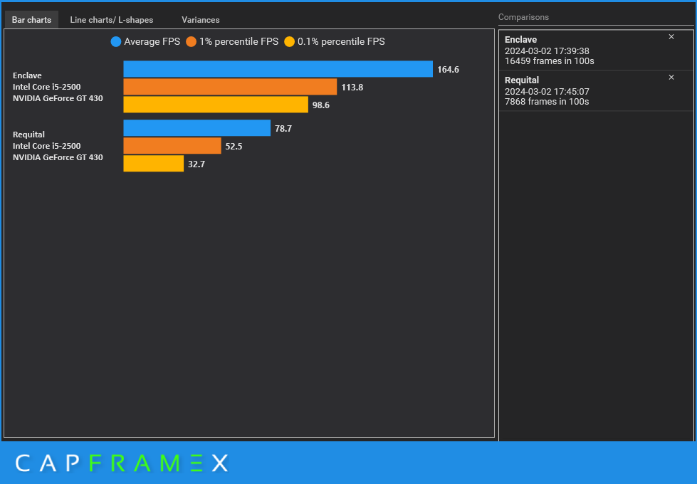 В качестве тестовой системы, в данном случае будет "интернет ПК" с i5-2500 и GT 430 "на борту". Настройки игр будут максимальными. Для Requital установлено разрешение 1600х1200, а для Enclave - 1920х1080.