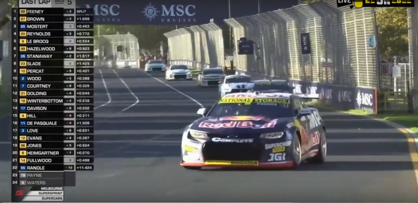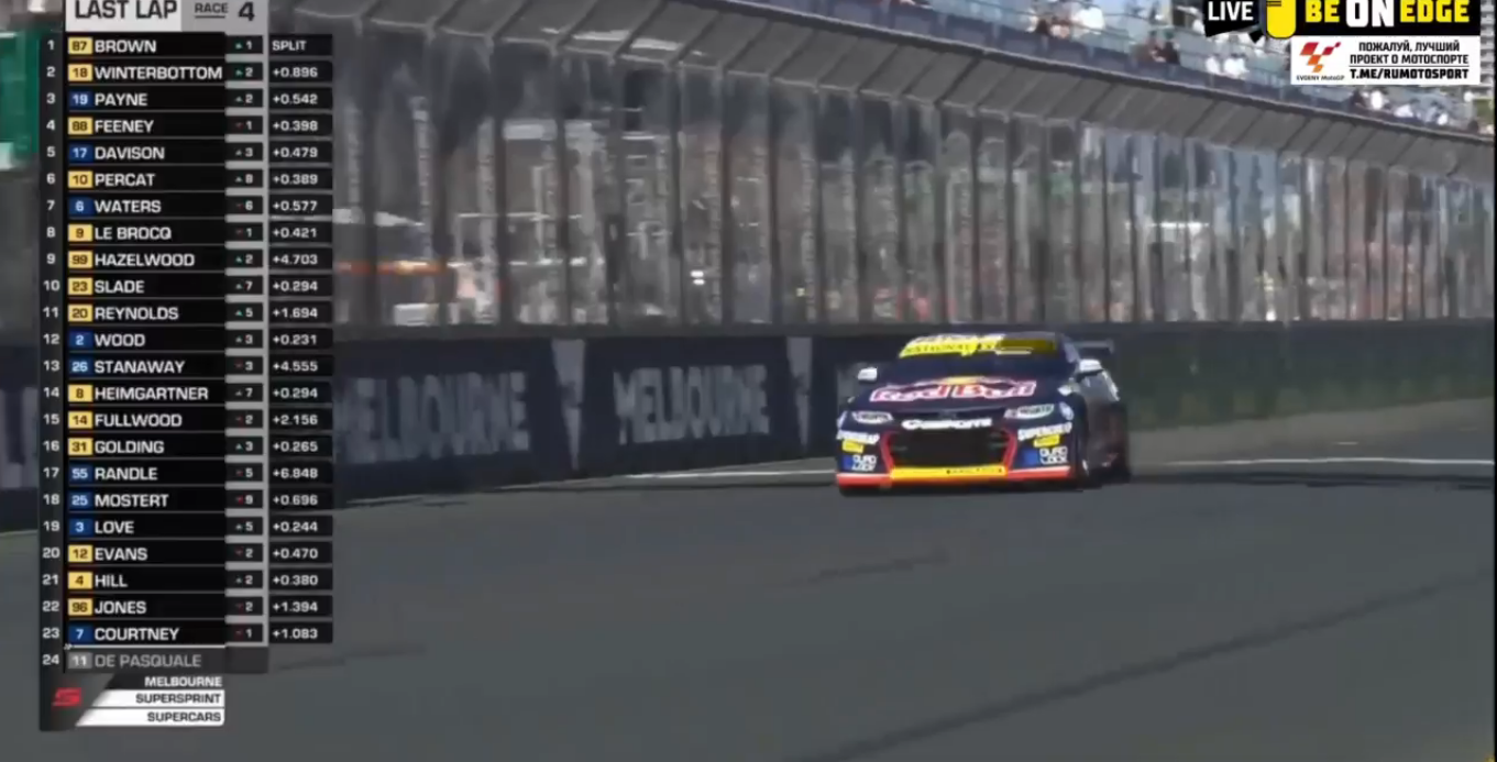 Скорее всего, из-за проведения этапа Формулы 1, местный чемпионат SuperCars прошел смещенным аж до четверга. С другой стороны - прошло сразу 4 гонки...