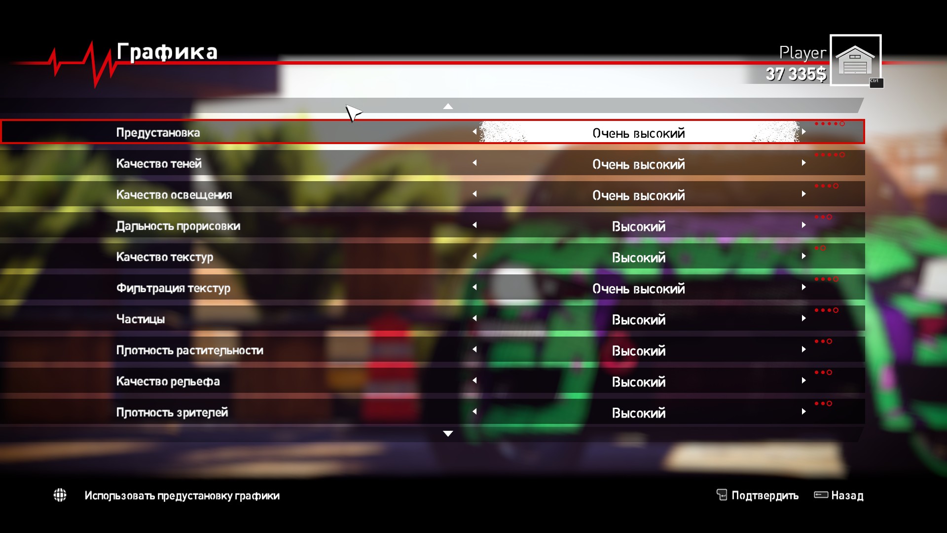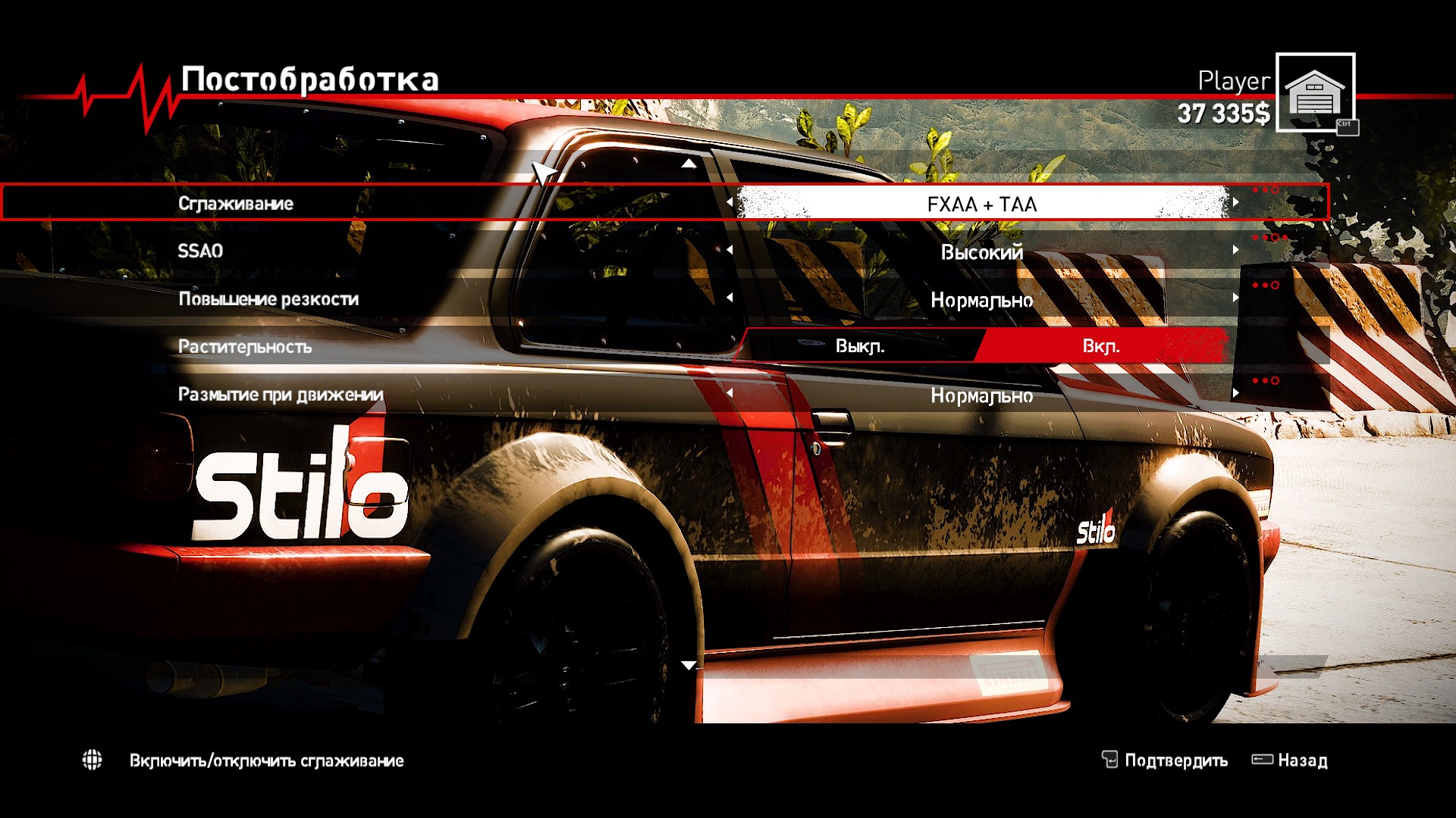 Настроек автомобиля тут немного. Но хватит для такого типа игры. Баланс тормозов, степень прижимной силы, настройка подвески и распределение крутящего момента... Что еще нужно?