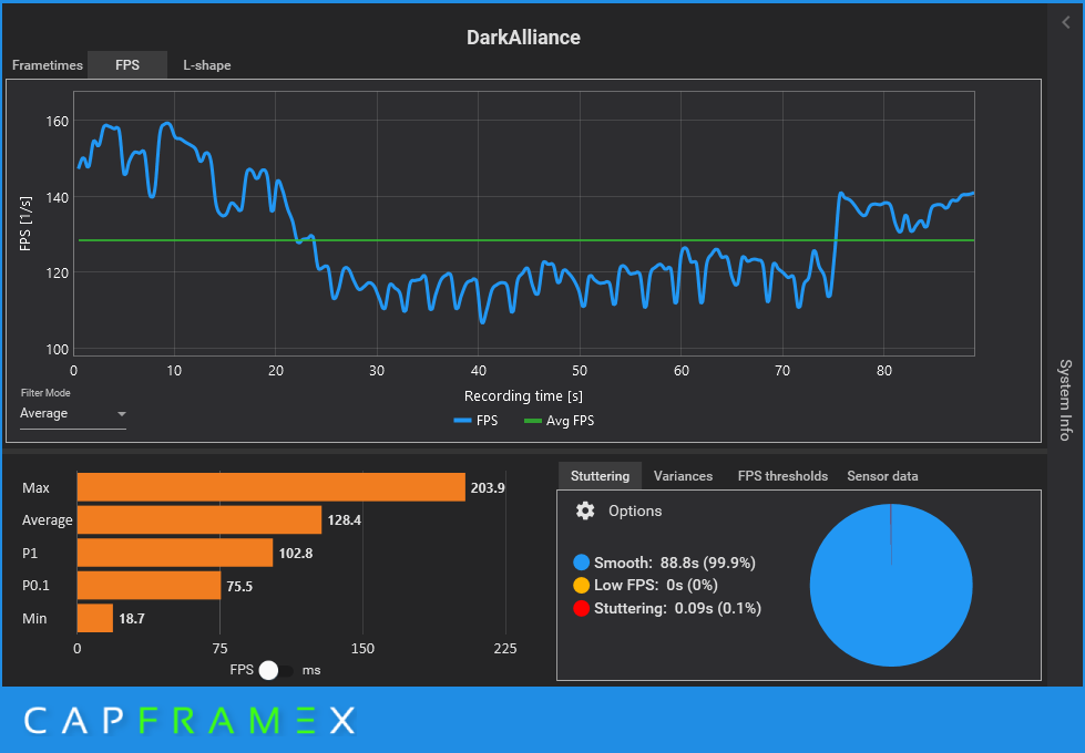 Запись тестового отрезка осуществлялся программой CapFrameX.