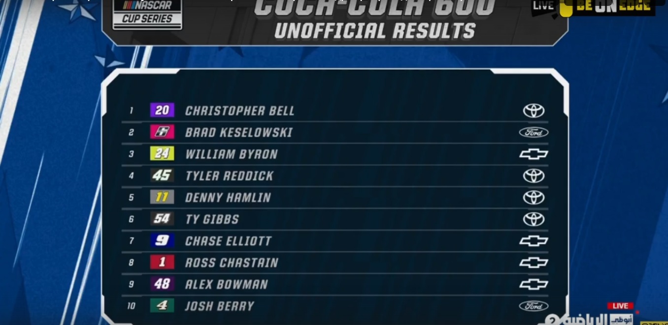 А участник NASCAR, Кайл Ларсон добрался до финиша на 18-й позиции.