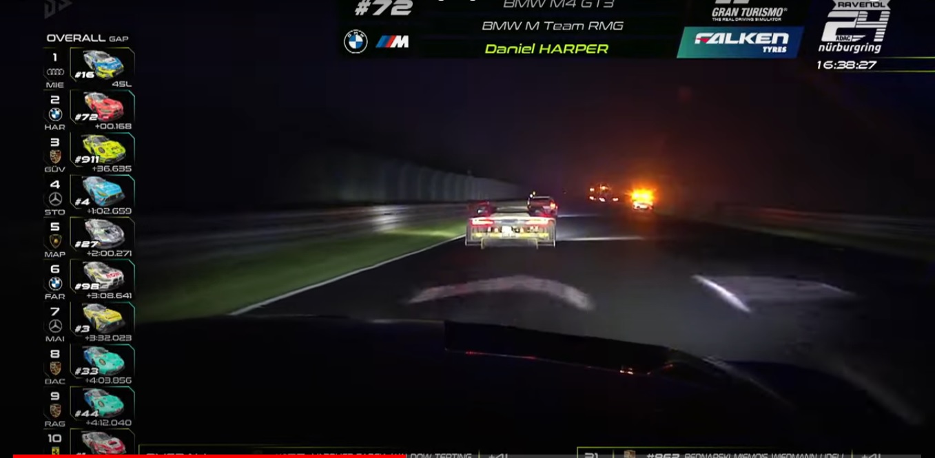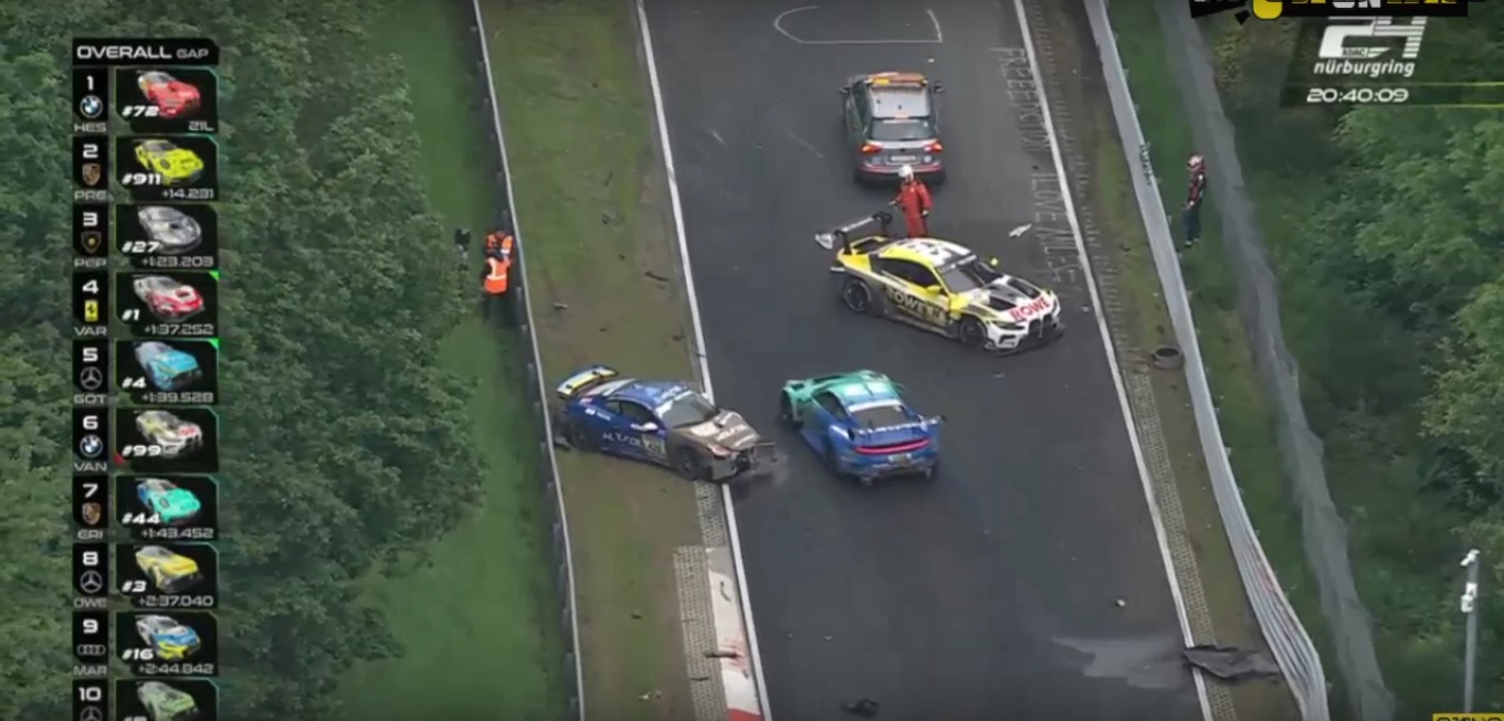 24 часа Нордшляйфе. Прошел очередной марафон, который, как всегда, изобиловал авариями и прочими происшествиями. Уже в первые часы гонки, лидер на BMW команды ROWE выбивает из борьбы из-за столкновения при обгоне младших классов.