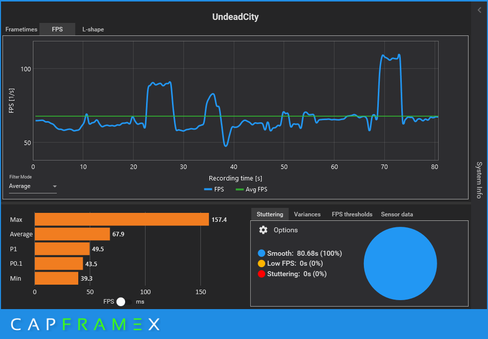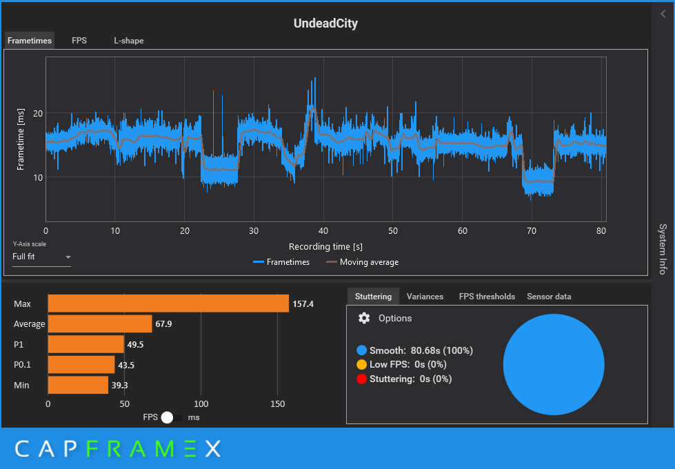 Запись тестового отрезка осуществлялся программой CapFrameX.
