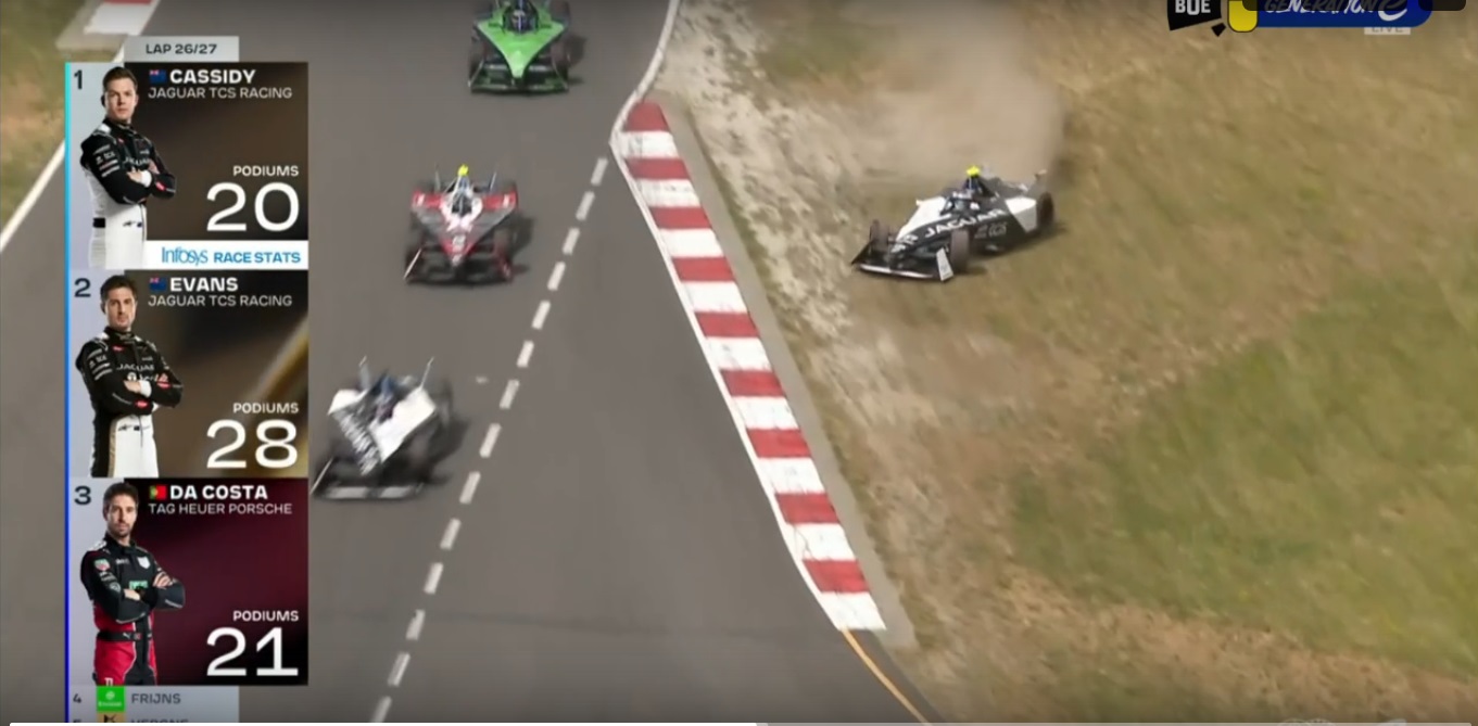и теряет все шансы! На первое место выходит второй пилот этой команды, Митч Эванс.