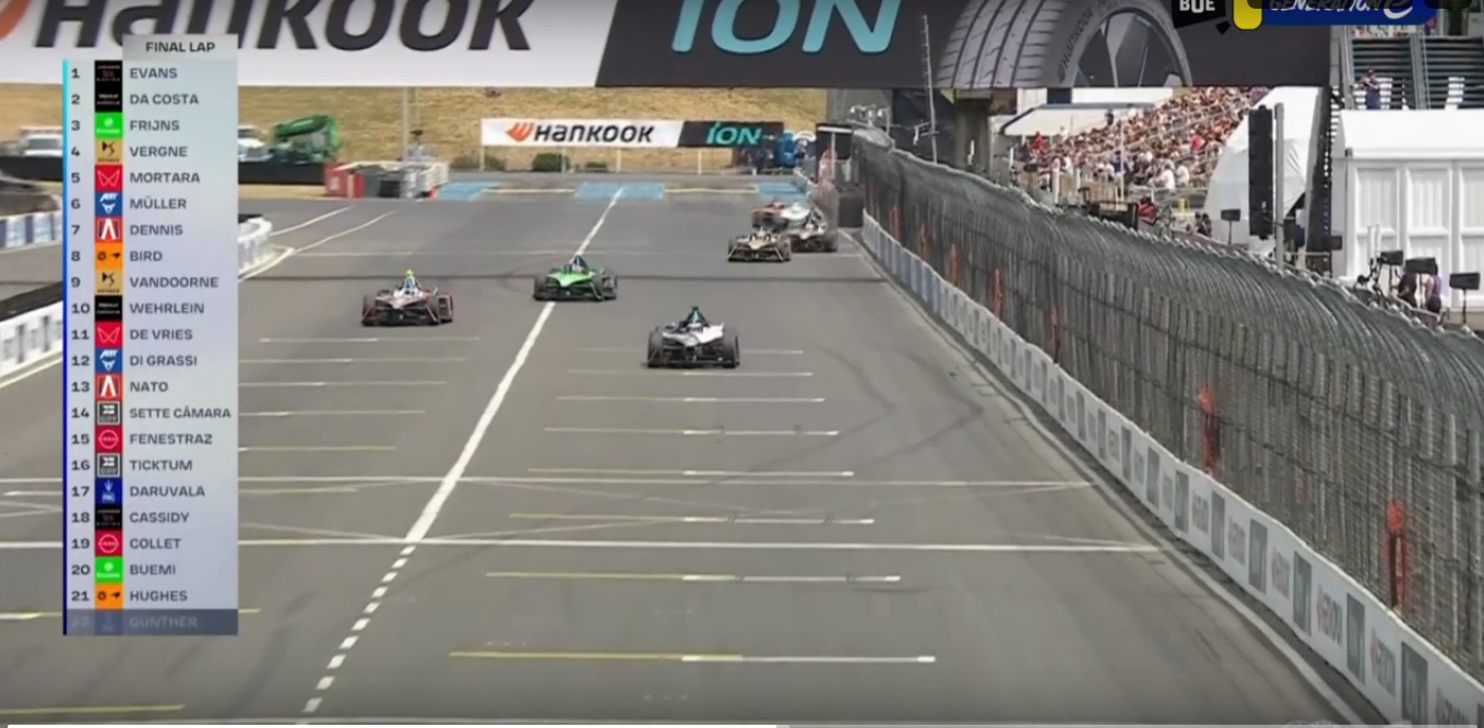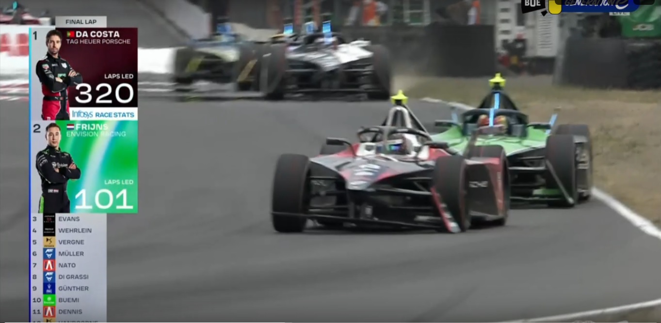 Но у него был штраф. И таким образом побеждает Феликс Да Кошта (TAG Heuer Porsche Formula E Team), который финишировал вторым.
