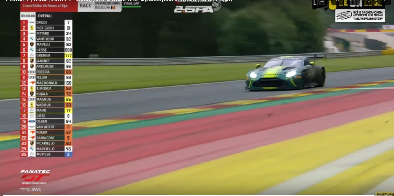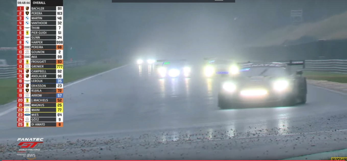 GTWC (Intercontinental GT Challenge). Знаменитая гонка 24 часа Спа... А какая гонка в Спа без дождя?