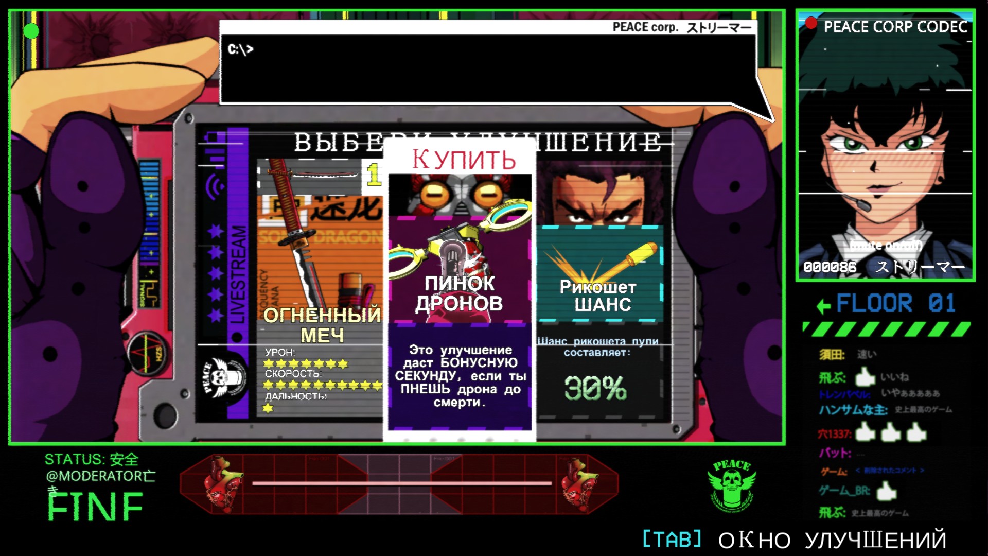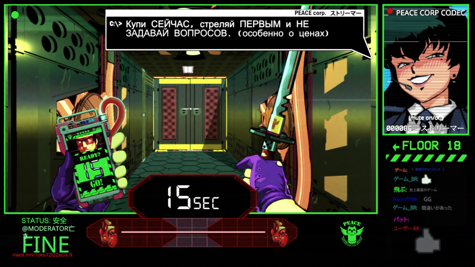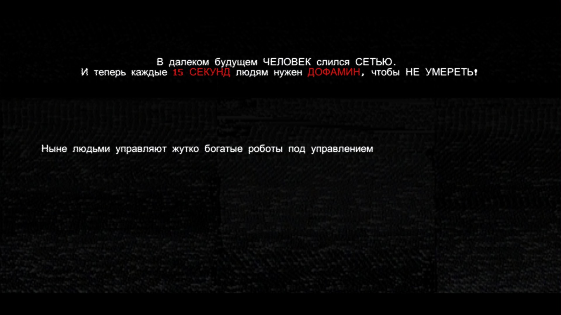 Описание из Steam: "В мире будущего ЧЕЛОВЕК слился с СЕТЬЮ, образовав новый вид. Этот «человек будущего» прочно сидит на ДОФАМИНЕ, и каждые 10 СЕКУНД ему нужна доза. Иначе — СМЕРТЬ!