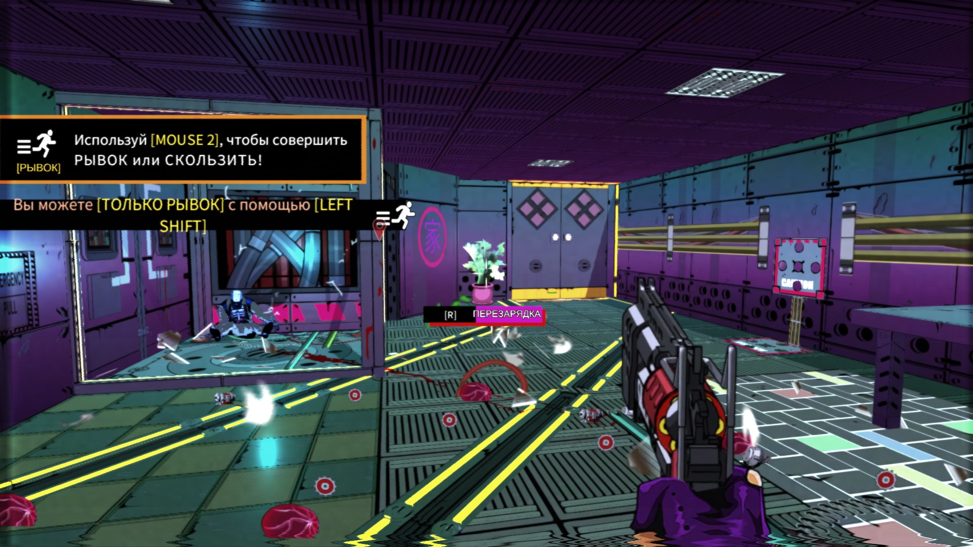 Также есть просто рывок, чтобы ускорить процесс перемещения (а это важно!). Можно оружие перезаряжать. И все! Оружие мы можем прокачивать уровнями или менять.