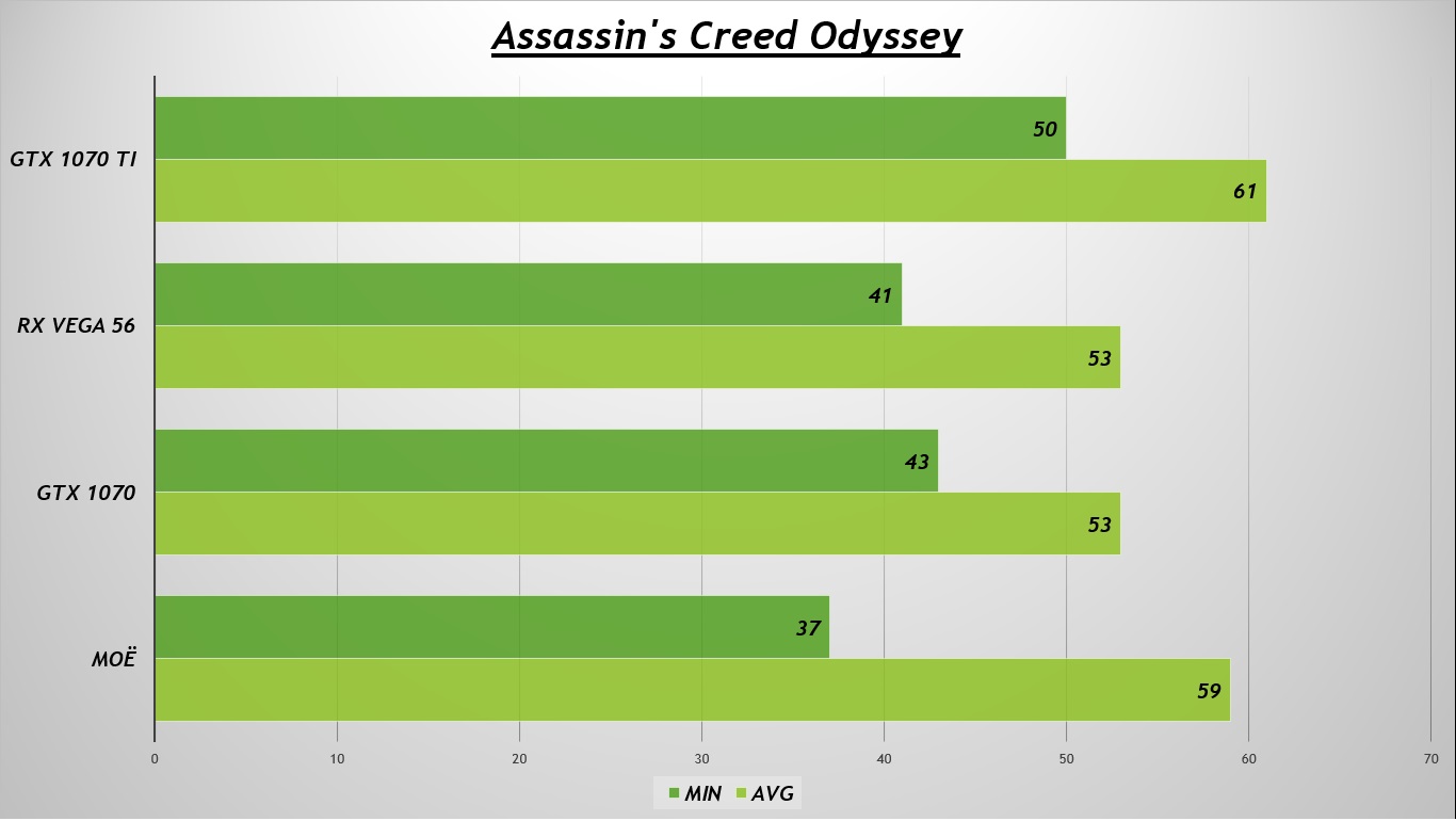 Assassin's Creed Odyssey. Все данные для теста сможете увидеть на сайте GameGPU. Из всего сомна результатов я выбрал тест той самой, "правильной" версии: без DLC. Чтобы понимали: апдейтов и обновлений на эту версию не накатывали по понятным причинам...