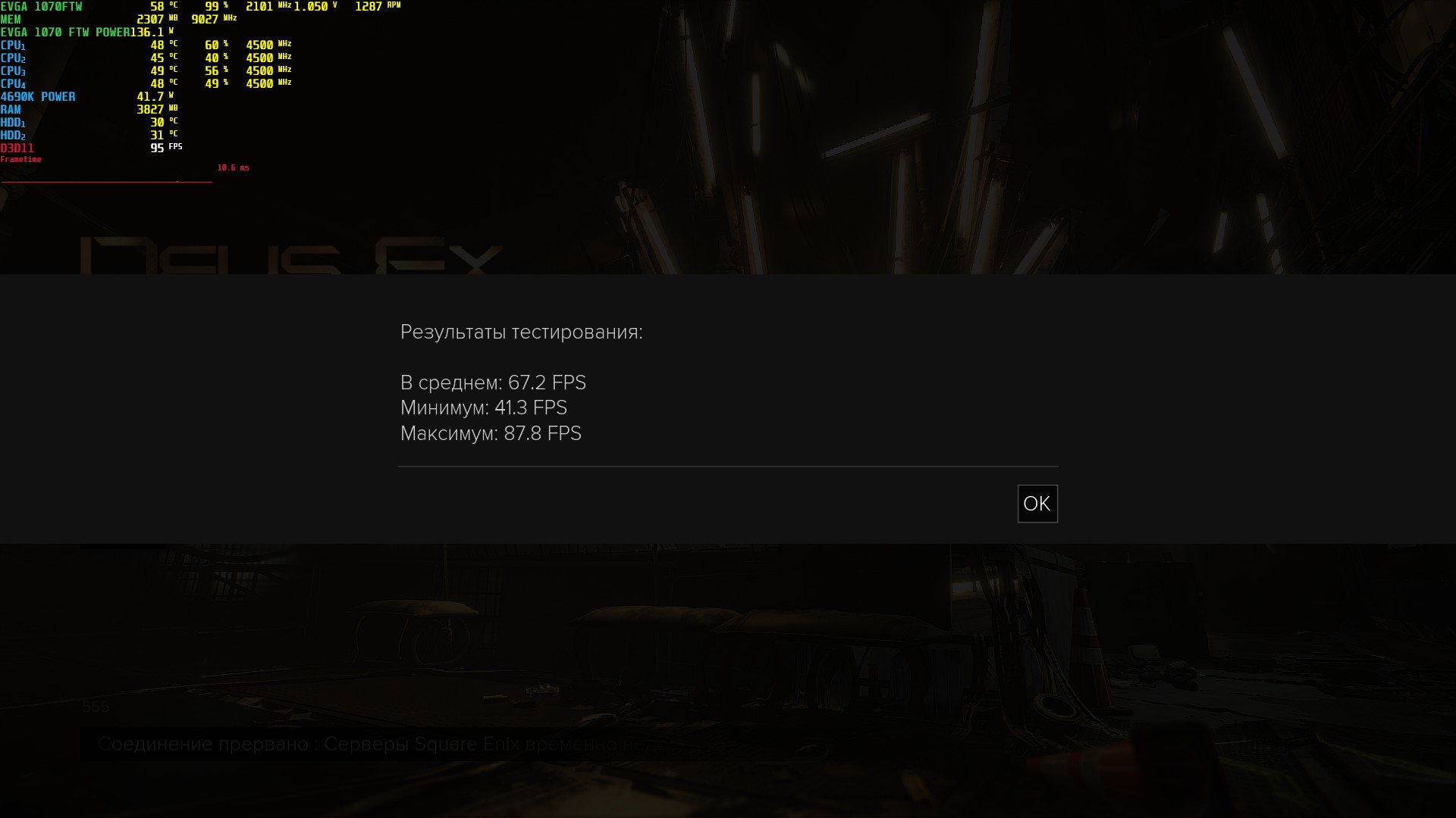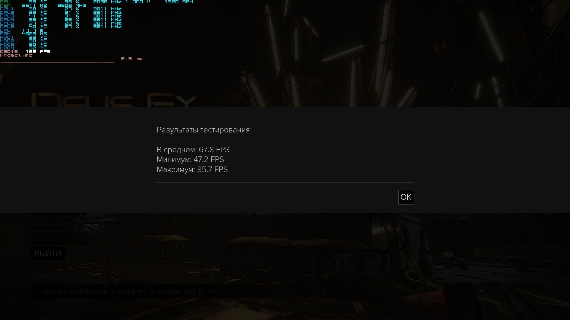 Я уже не помню, какой тут был процессор: i5-8400 или i7-8700T. Но это и не особо важно, так как игра любит мощный однопоток. А у данных процессоров он одинаковый.
