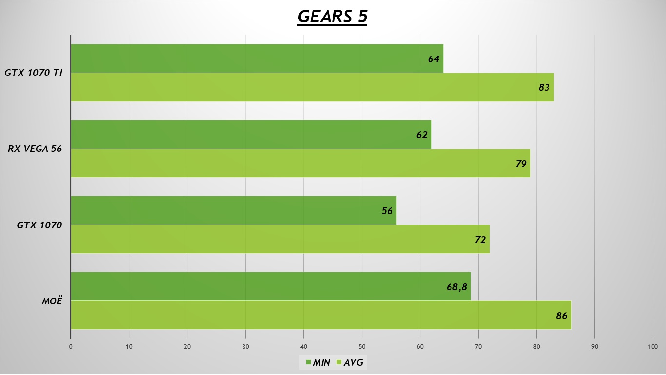 Gears 5. Тут я тестов делал не очень много, но скриншоты сохранились (опять, "та самая" версия игры):