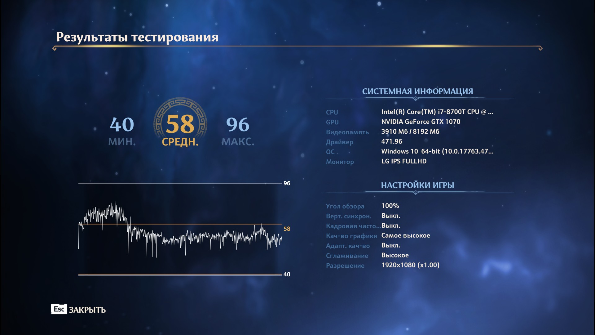 Мой результат с процессором i5-8700T и видеокартой в среднем профиле разгона: