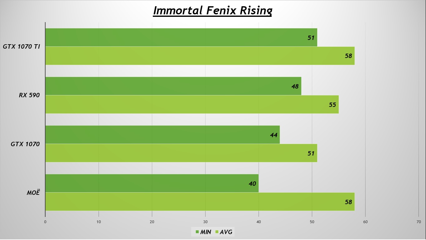 Последней игрой будет ремастер Kingdoms of Amalur Re-Reckoning. Тут нет встроенного бенчмарка, но игру я взял на тест по причине КОЛОССАЛЬНОЙ разницы между результатами сайта и моими. Я отлично помню, как ликовали "некрасные нефанаты": "Вот! Оно случилось! "Патенцивал" RX 580 раскрылся - карта унизила GTX 1070". Даже не буду упоминать того, кто первым выразил ликование (многие догадаются сами). Как только появилась "правильная" версия, я этот отрезок повторил... Ничего подобного не намерил. Совсем другой результат! О нем подробнее я писал давно в своей статье "Краткий обзор и тестирование в играх Red Faction - Guerrilla и Kingdoms of Amalur Reckoning".