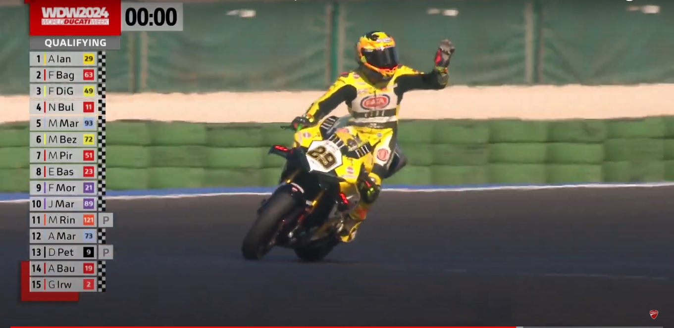 Состоялся традиционный фестиваль Ducati, где гонялись пилоты из MotoGP и WSBK. Все выступали на практически серийных супербайках Ducati V4R. Сама гонка прошла на треке в Мизано. Лучшее время в квалификации показал... Нет, не пилот из заводской команды WSBK. И не лучшие пилоты из MotoGP. Лучшим стал Андреа Янноне!